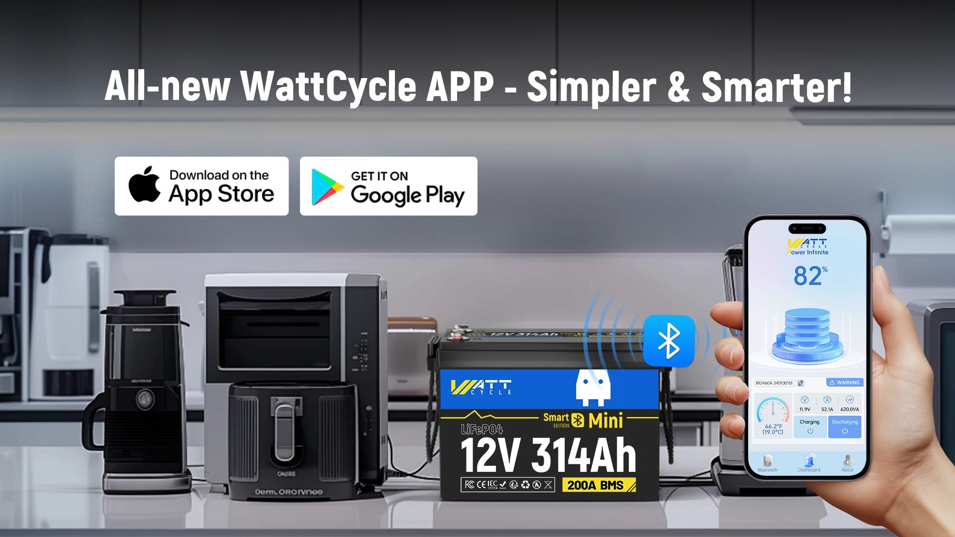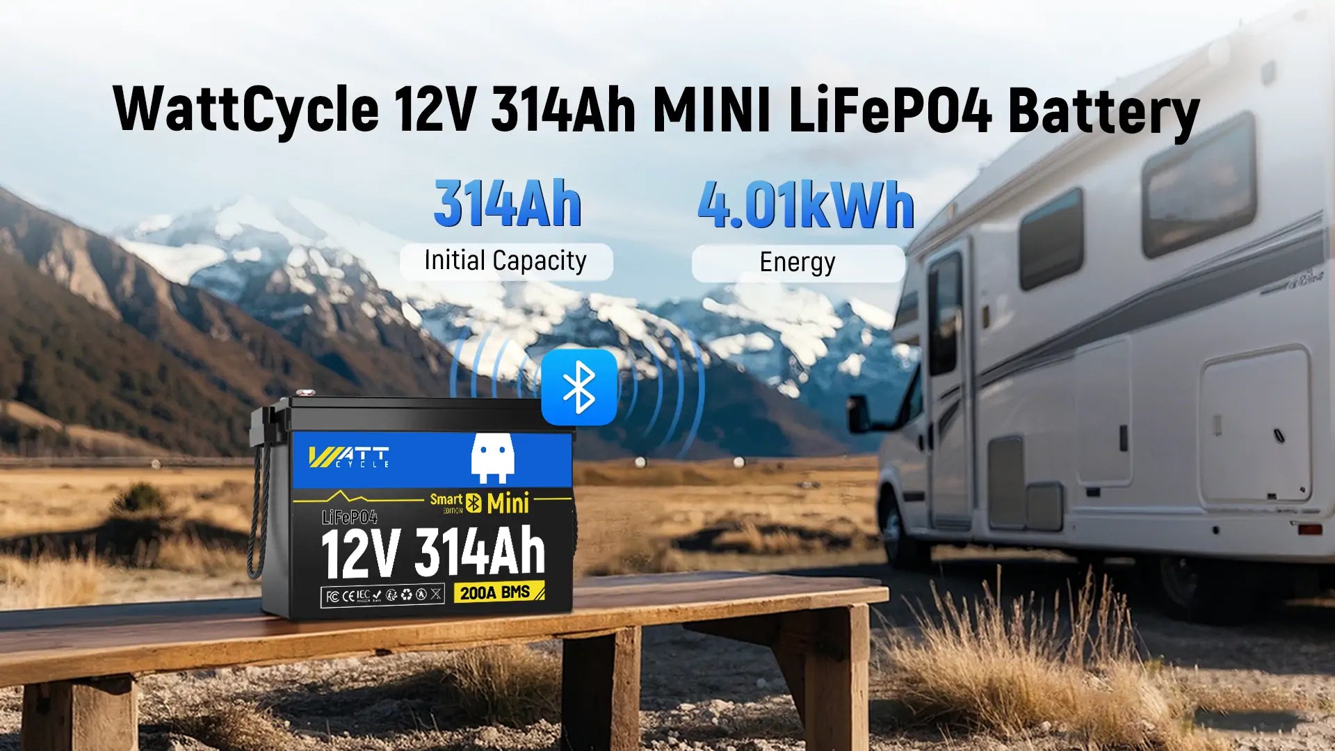 Upgraded WattCycle 12V 314Ah Mini LiFePO4 Battery with Bluetooth