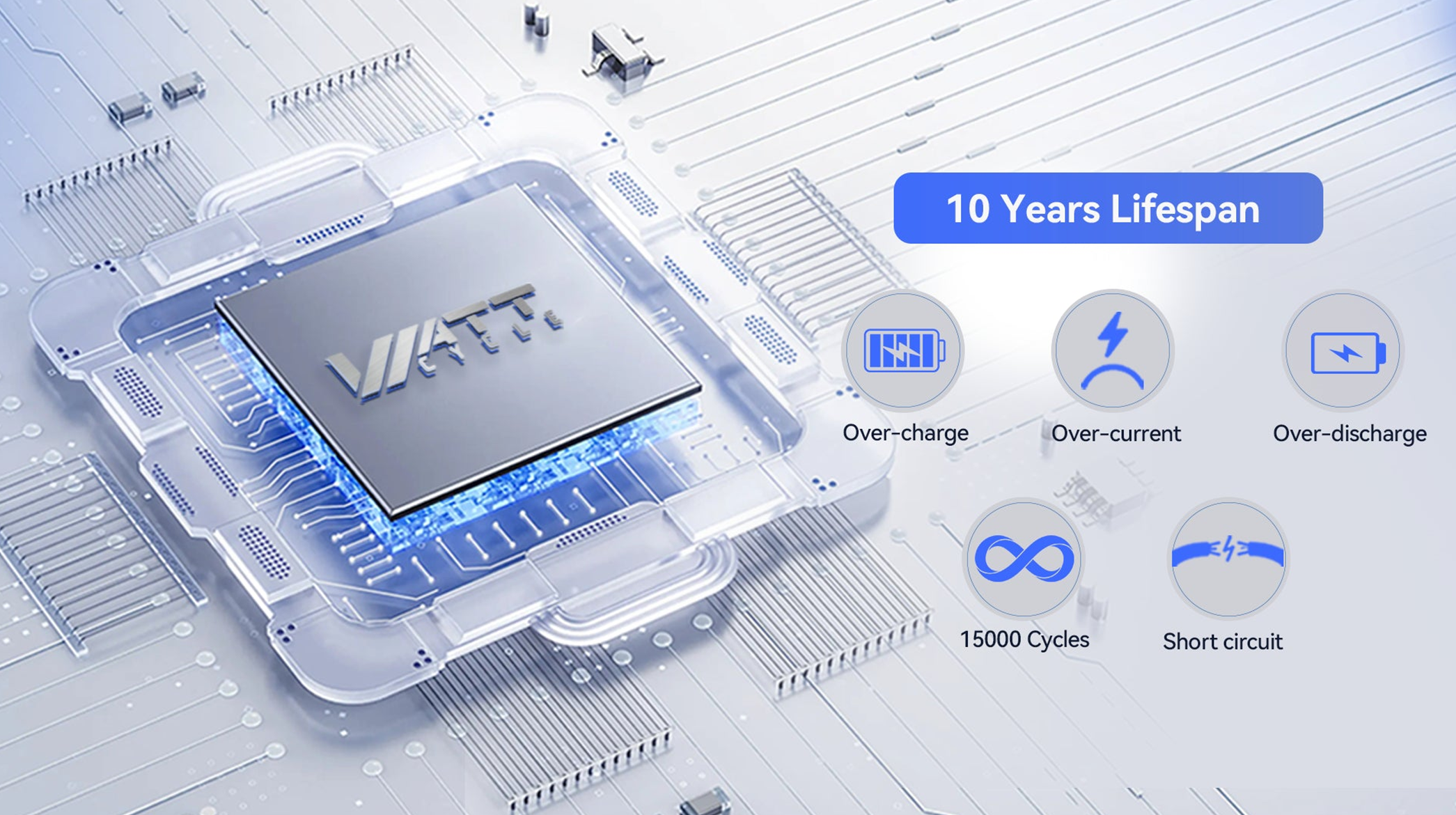 2560W Power: 600A (30s) discharge current to easily support multiple high-power devices.